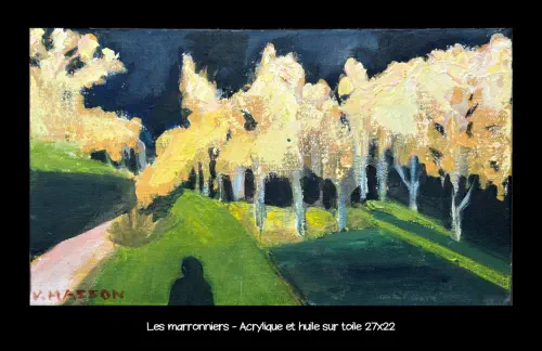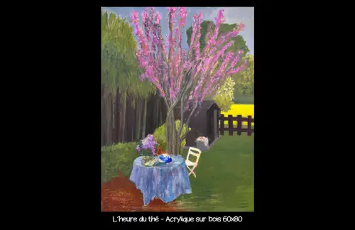 présente sa peinture