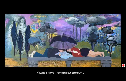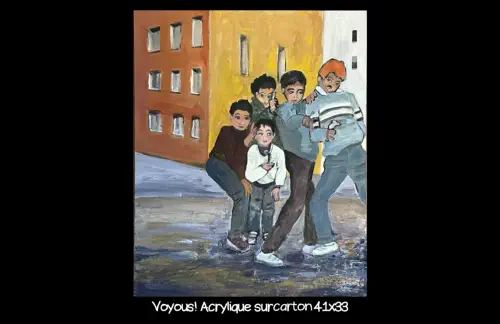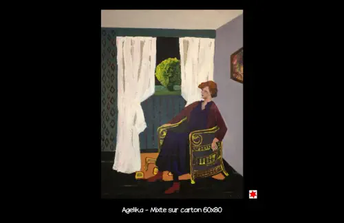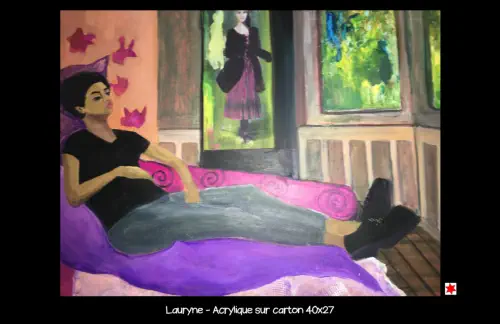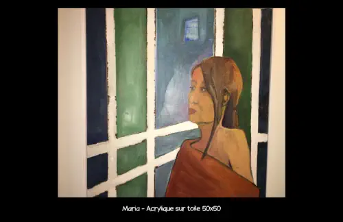 présente sa peinture