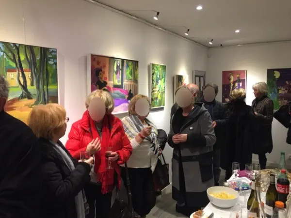 présente sa peinture